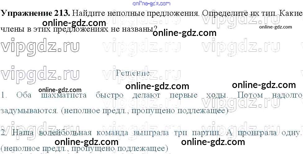 Готовые домашние задания по Русскому языку за 8 класс Учебник Тростенцова, Ладыженская 2014 - Упражнения 213