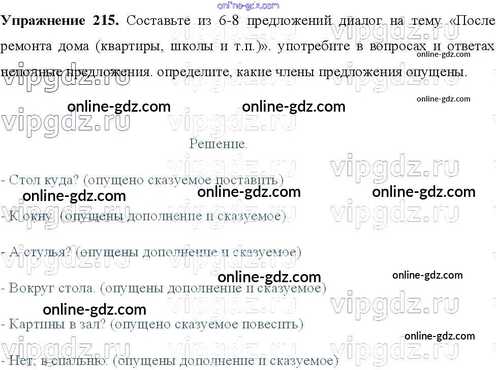 Готовые домашние задания по Русскому языку за 8 класс Учебник Тростенцова, Ладыженская 2014 - Упражнения 215