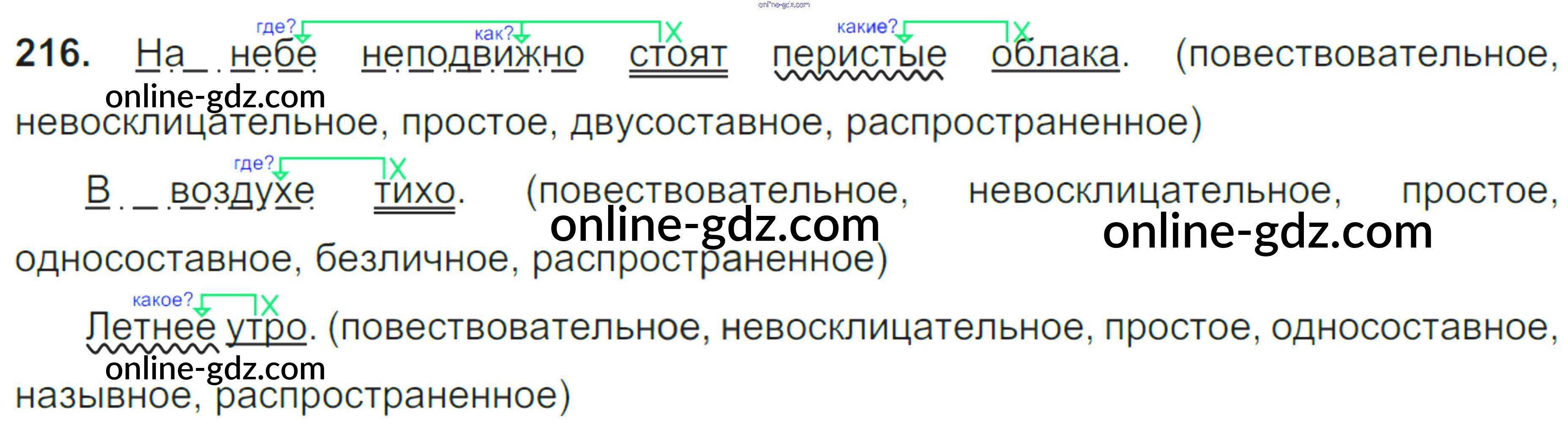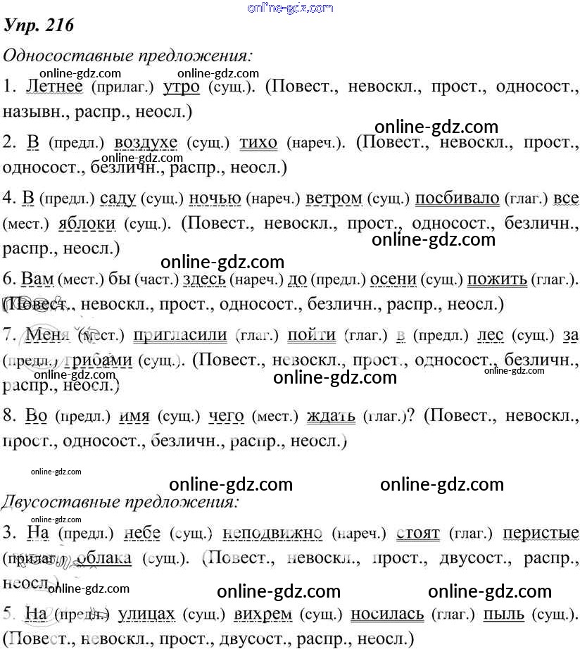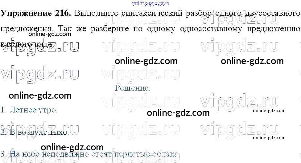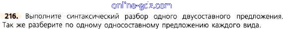 Готовые домашние задания по Русскому языку за 8 класс Учебник Тростенцова, Ладыженская 2014 - Упражнения 216
