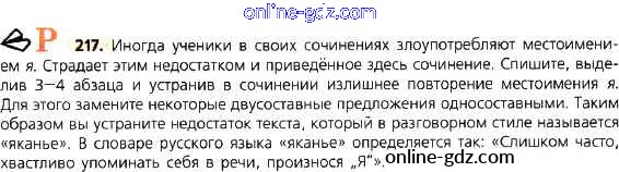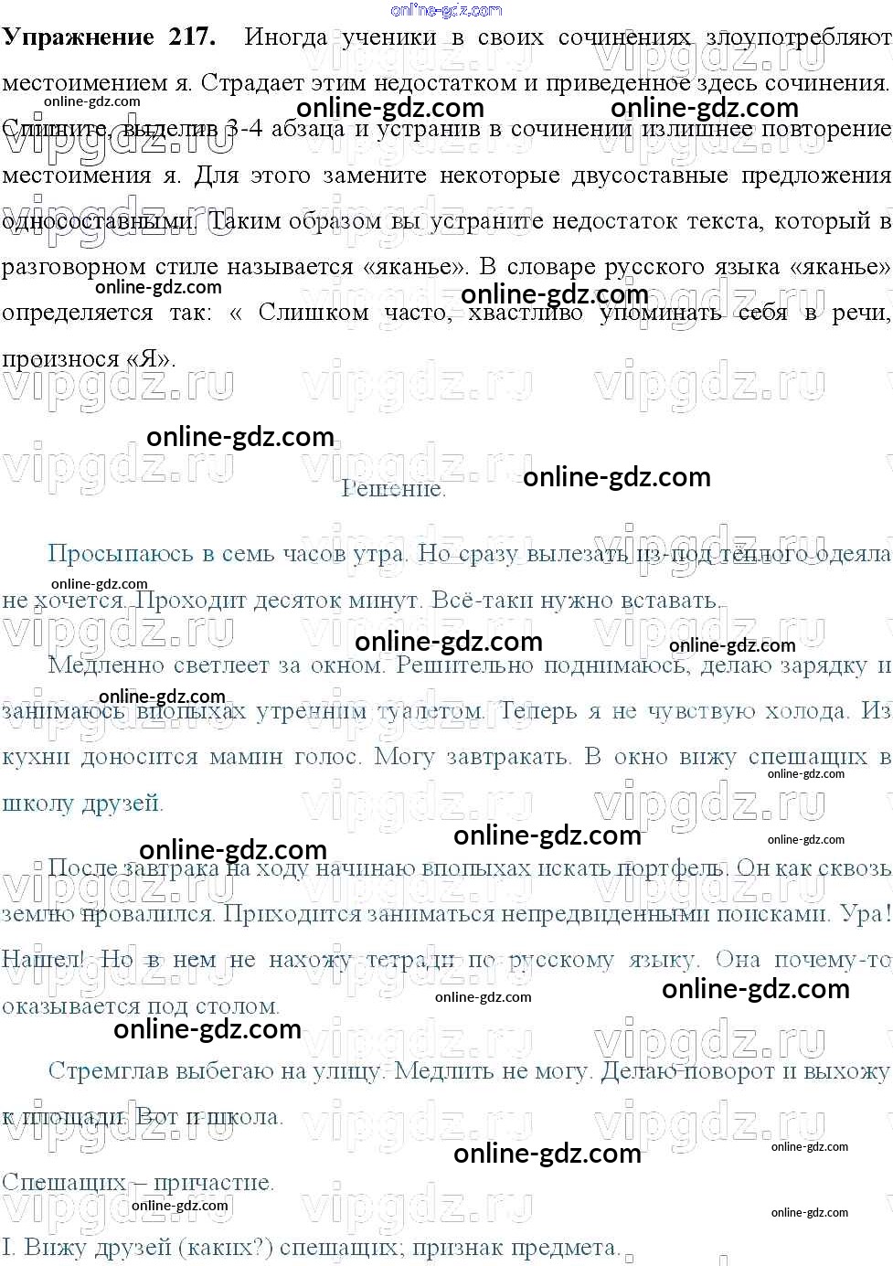 Готовые домашние задания по Русскому языку за 8 класс Учебник Тростенцова, Ладыженская 2014 - Упражнения 217