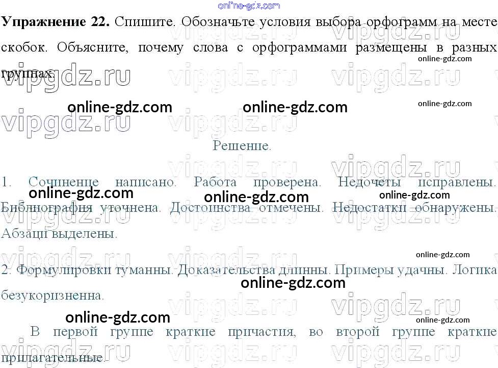 Готовые домашние задания по Русскому языку за 8 класс Учебник Тростенцова, Ладыженская 2014 - Упражнения 22