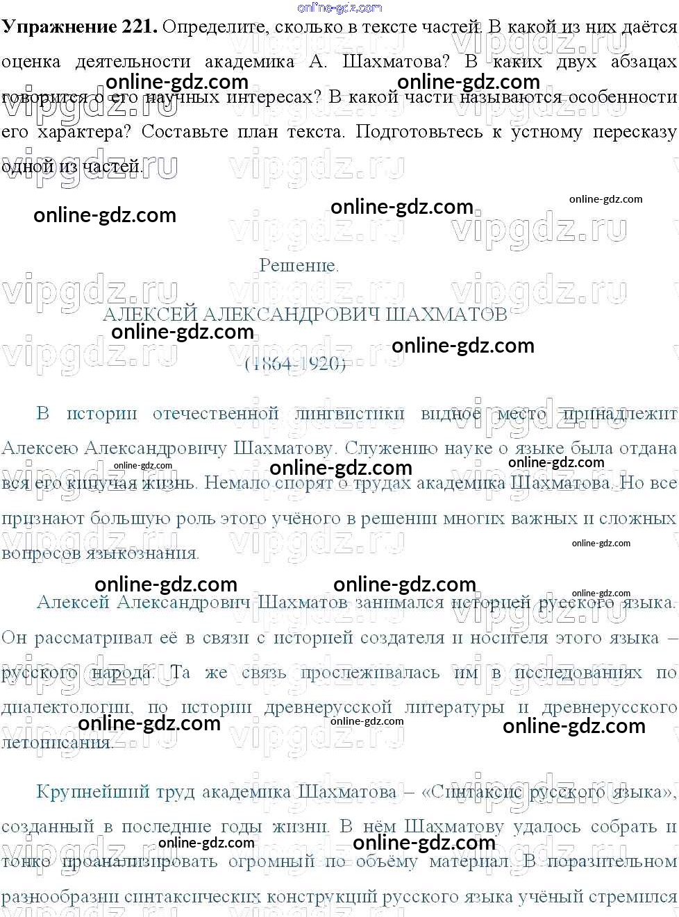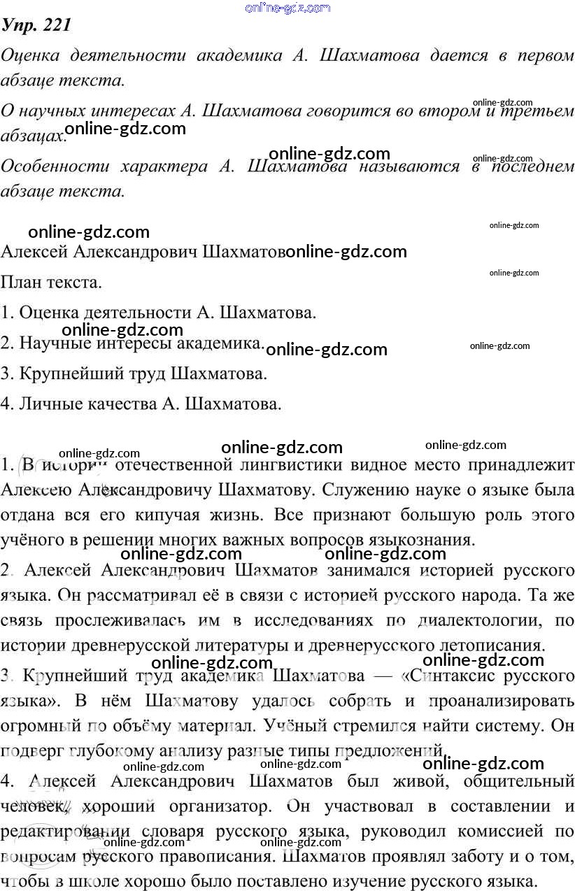 Готовые домашние задания по Русскому языку за 8 класс Учебник Тростенцова, Ладыженская 2014 - Упражнения 221