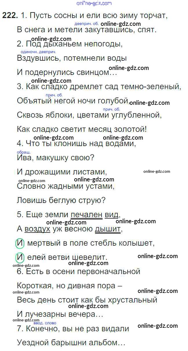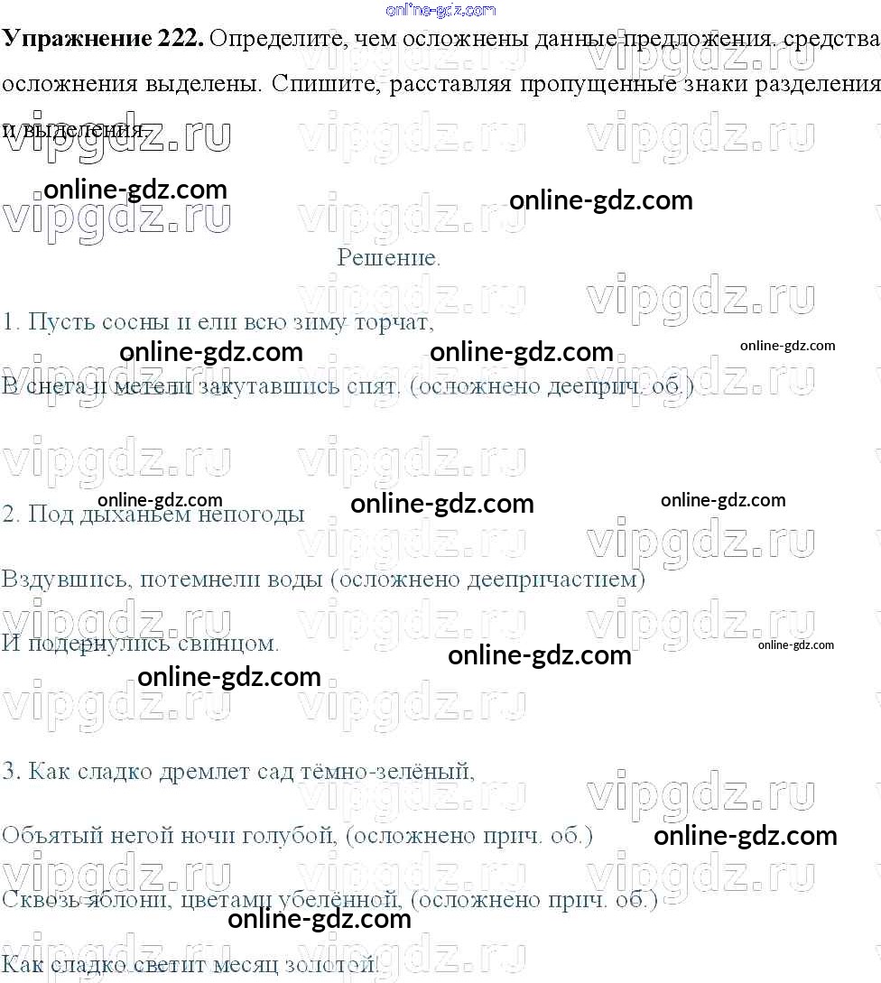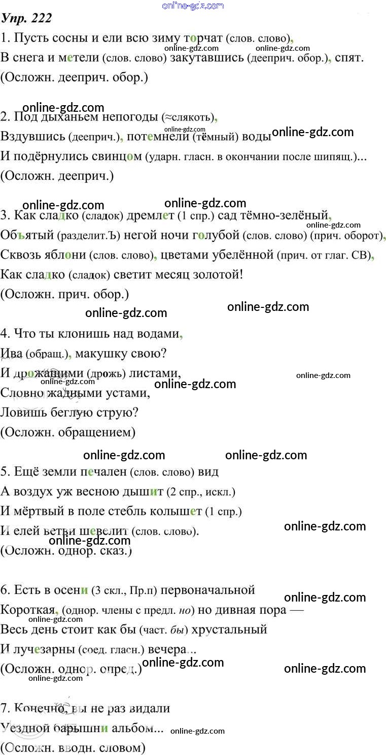 Готовые домашние задания по Русскому языку за 8 класс Учебник Тростенцова, Ладыженская 2014 - Упражнения 222