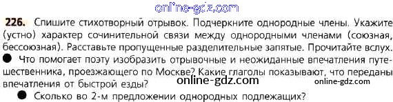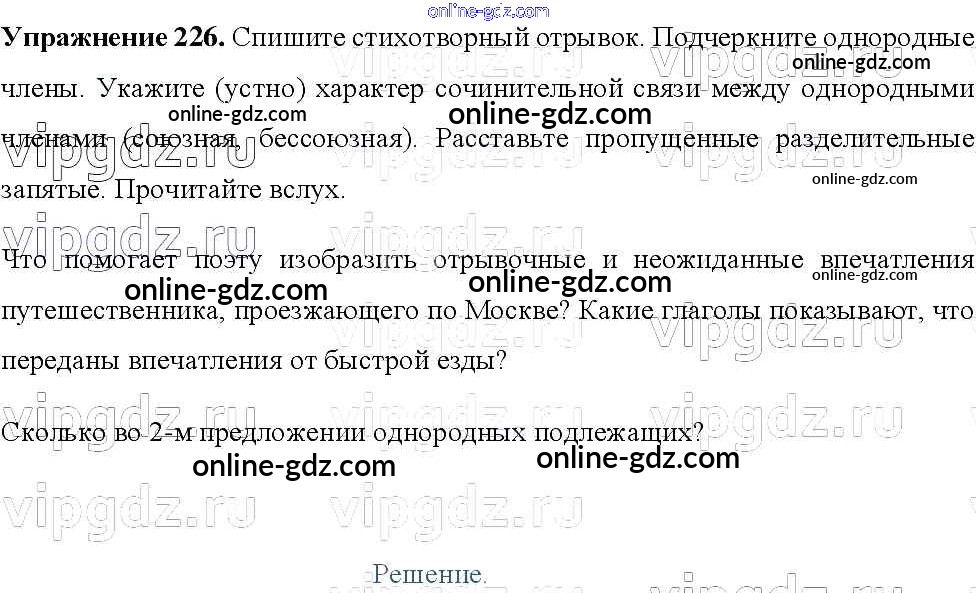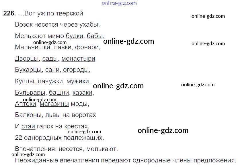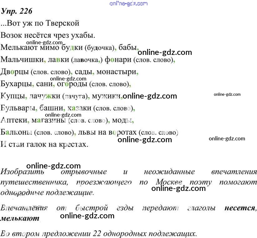Готовые домашние задания по Русскому языку за 8 класс Учебник Тростенцова, Ладыженская 2014 - Упражнения 226