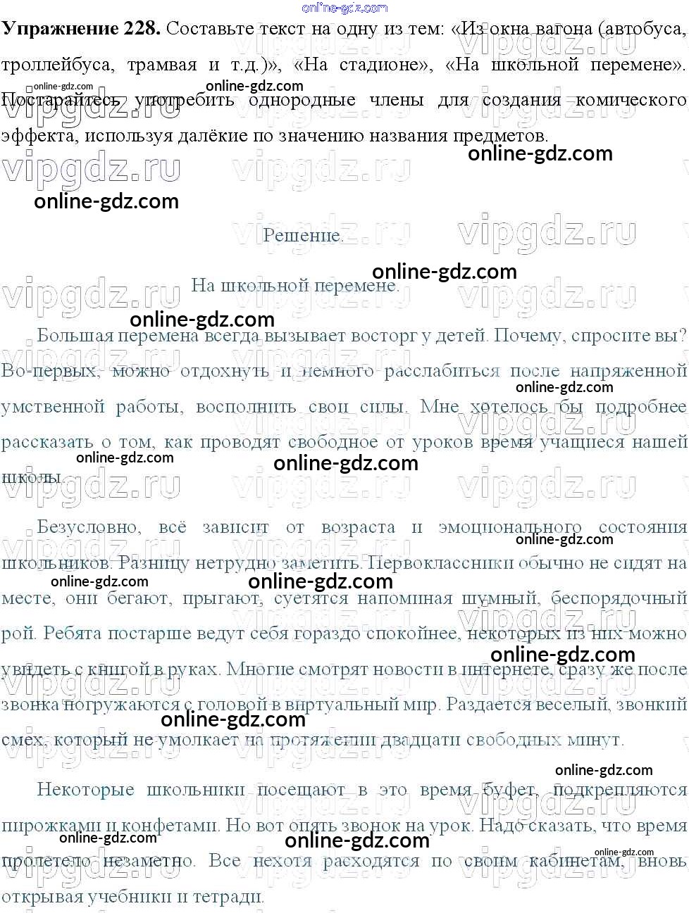 Готовые домашние задания по Русскому языку за 8 класс Учебник Тростенцова, Ладыженская 2014 - Упражнения 228