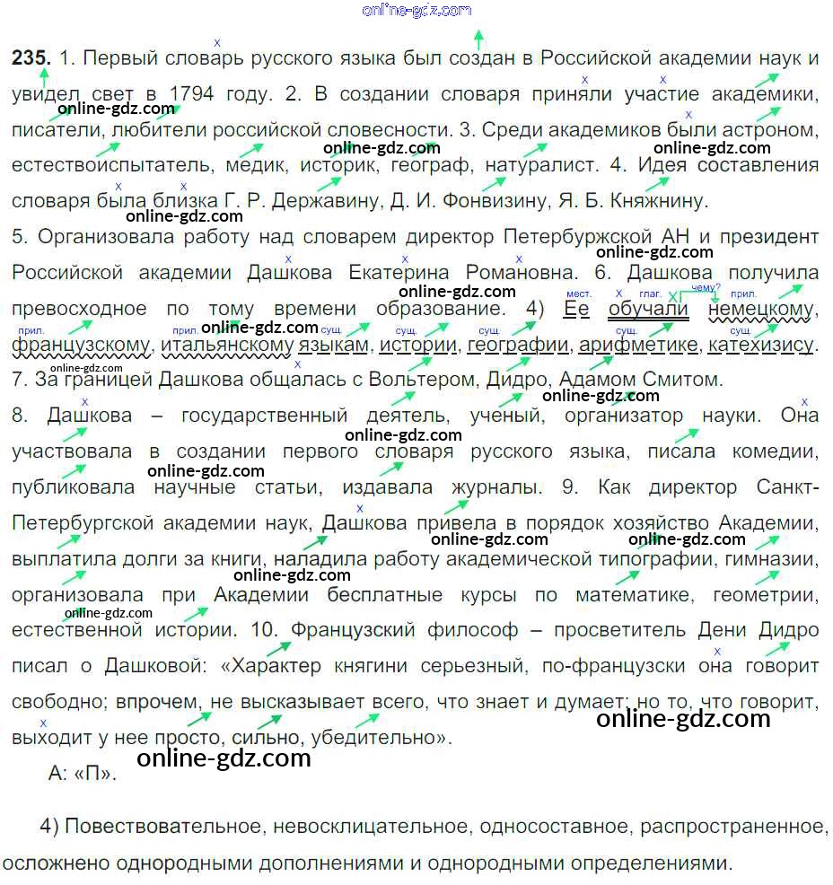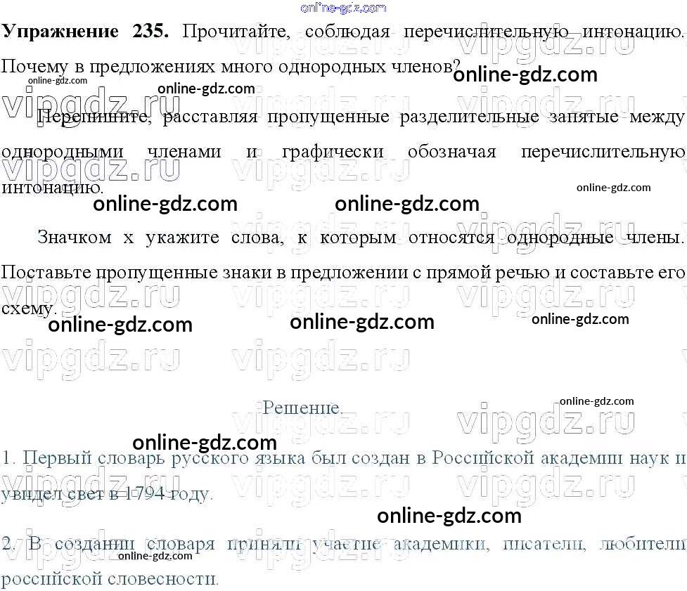 Готовые домашние задания по Русскому языку за 8 класс Учебник Тростенцова, Ладыженская 2014 - Упражнения 235