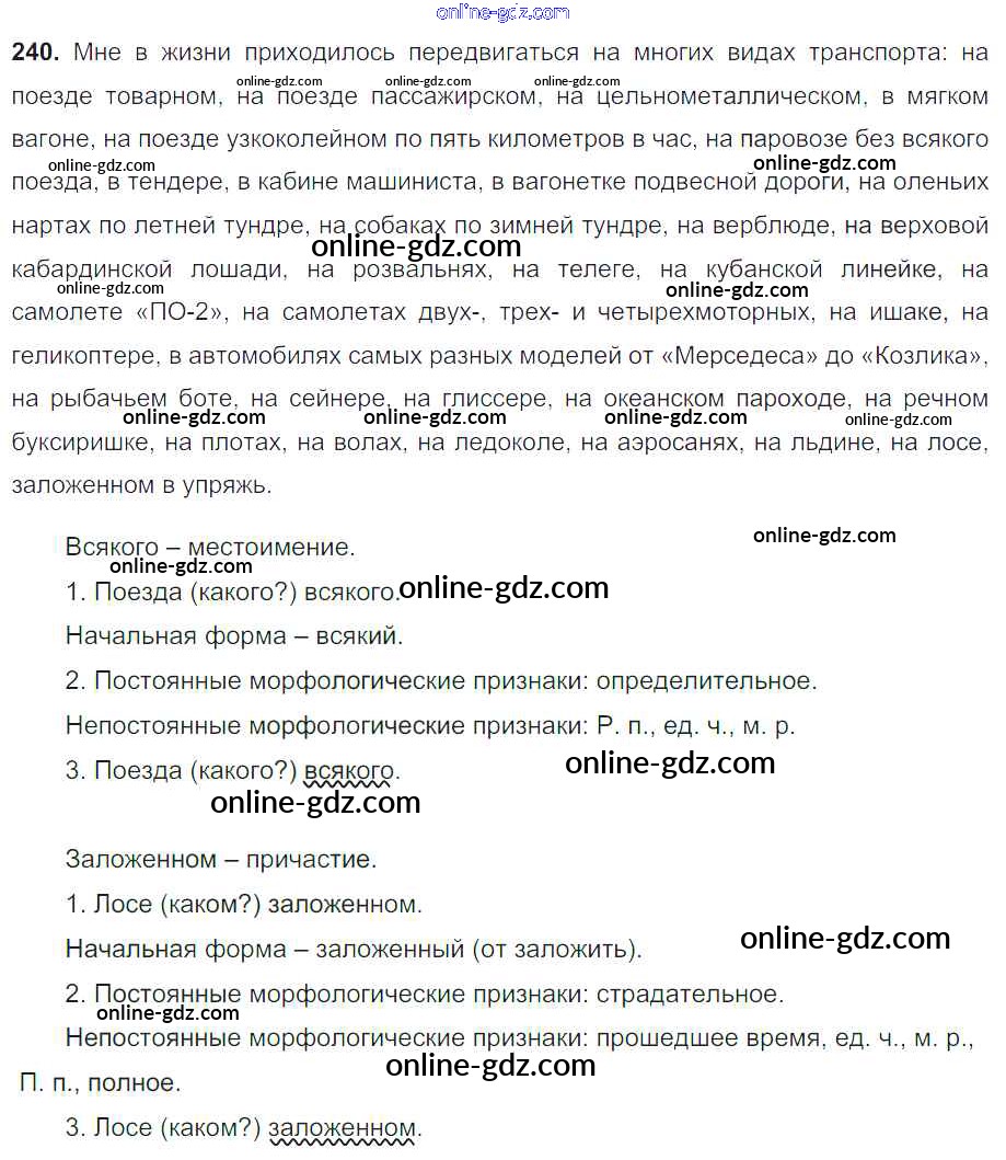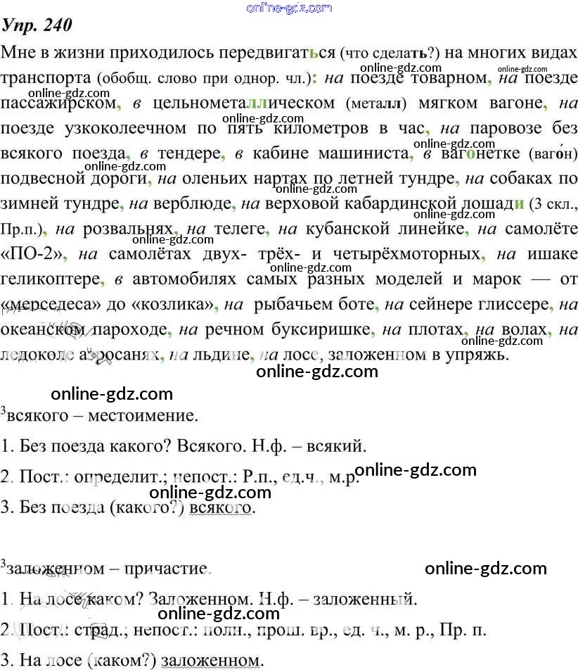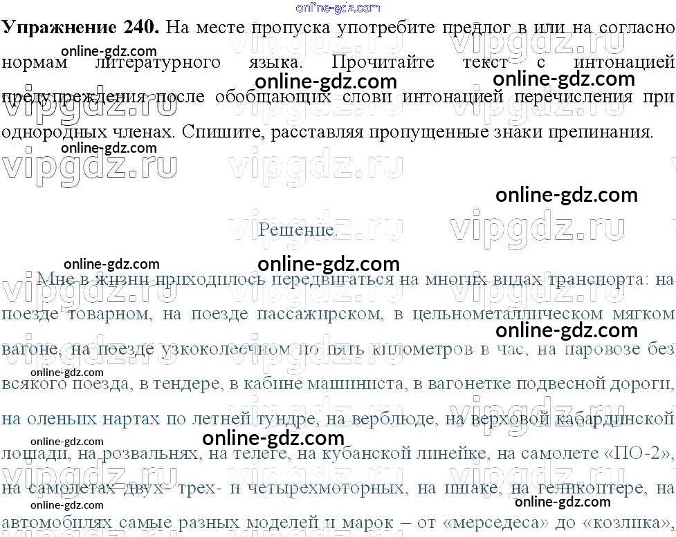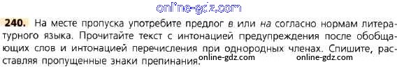 Готовые домашние задания по Русскому языку за 8 класс Учебник Тростенцова, Ладыженская 2014 - Упражнения 240