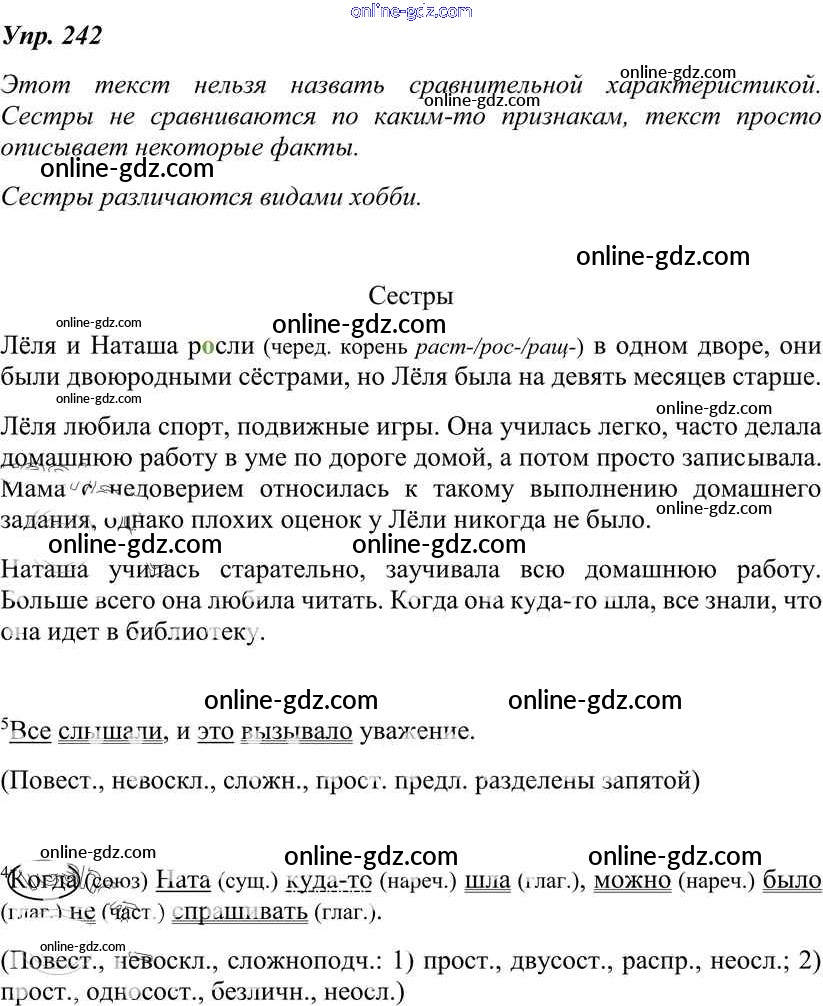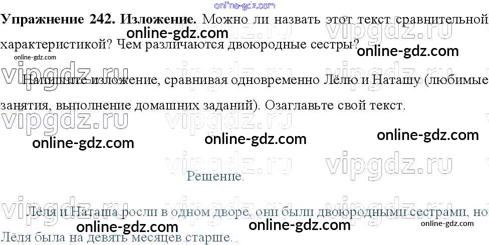 Готовые домашние задания по Русскому языку за 8 класс Учебник Тростенцова, Ладыженская 2014 - Упражнения 242
