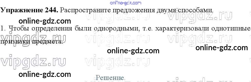 Готовые домашние задания по Русскому языку за 8 класс Учебник Тростенцова, Ладыженская 2014 - Упражнения 244