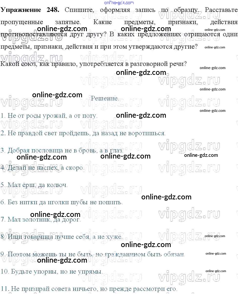 Готовые домашние задания по Русскому языку за 8 класс Учебник Тростенцова, Ладыженская 2014 - Упражнения 248