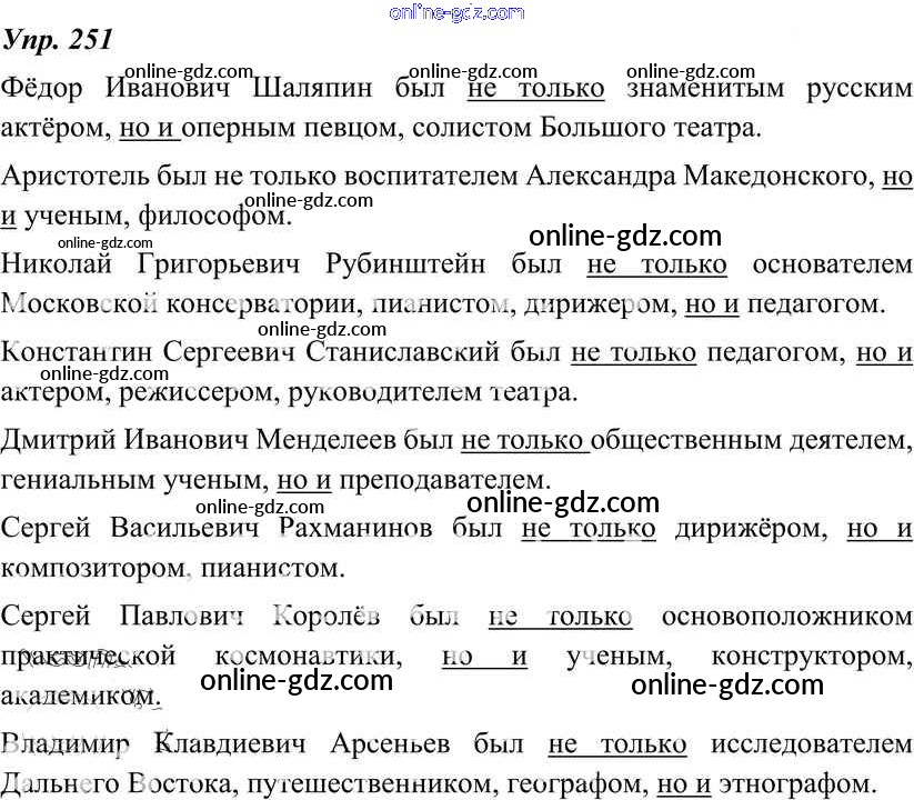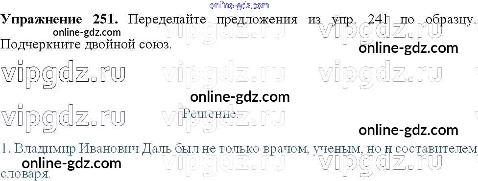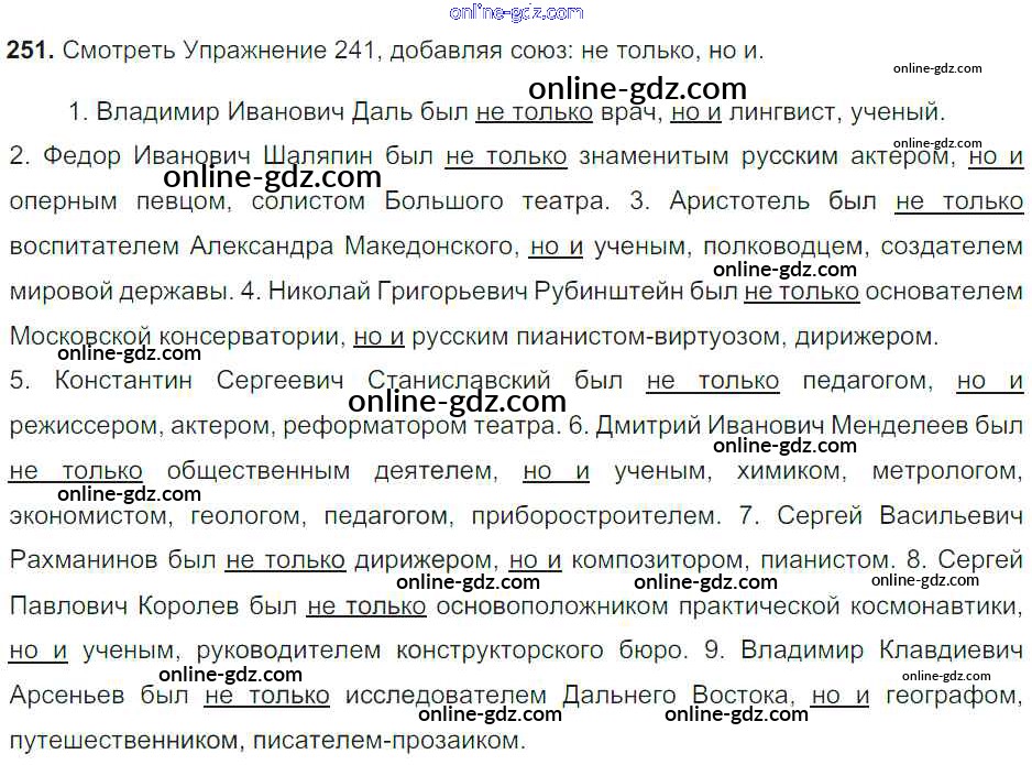 Готовые домашние задания по Русскому языку за 8 класс Учебник Тростенцова, Ладыженская 2014 - Упражнения 251