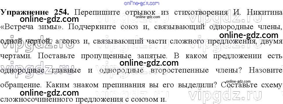 Готовые домашние задания по Русскому языку за 8 класс Учебник Тростенцова, Ладыженская 2014 - Упражнения 254