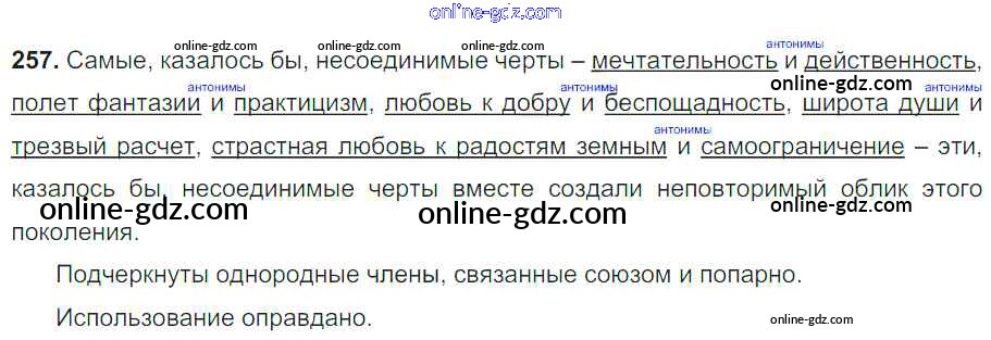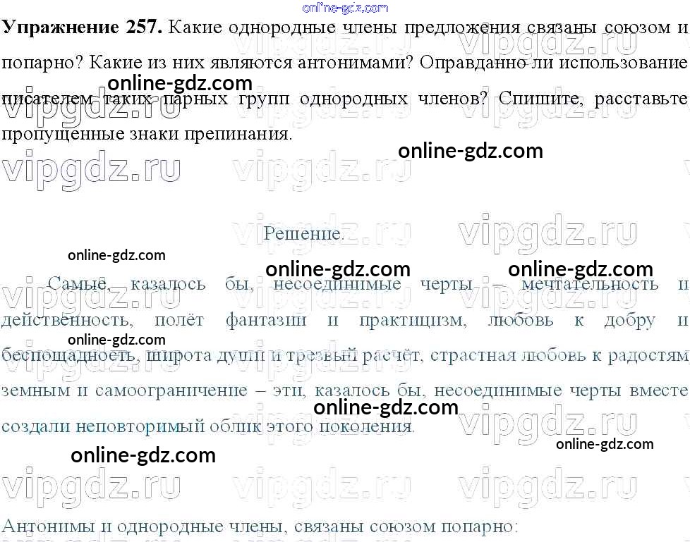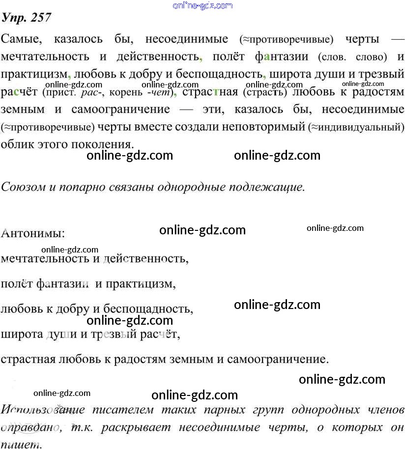 Готовые домашние задания по Русскому языку за 8 класс Учебник Тростенцова, Ладыженская 2014 - Упражнения 257