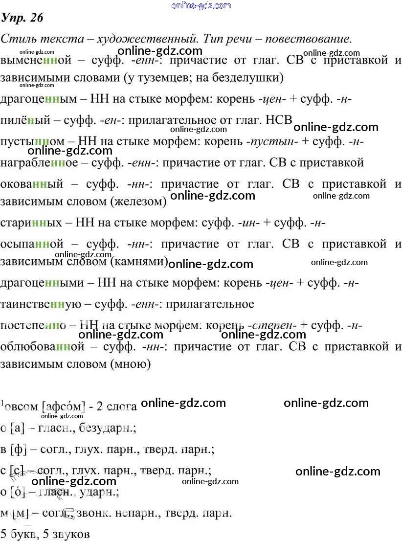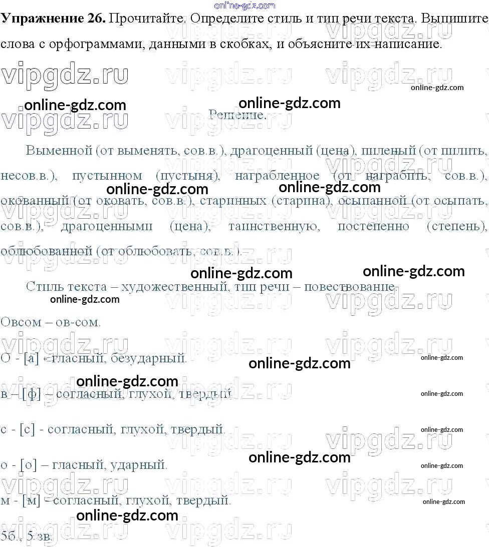 Готовые домашние задания по Русскому языку за 8 класс Учебник Тростенцова, Ладыженская 2014 - Упражнения 26