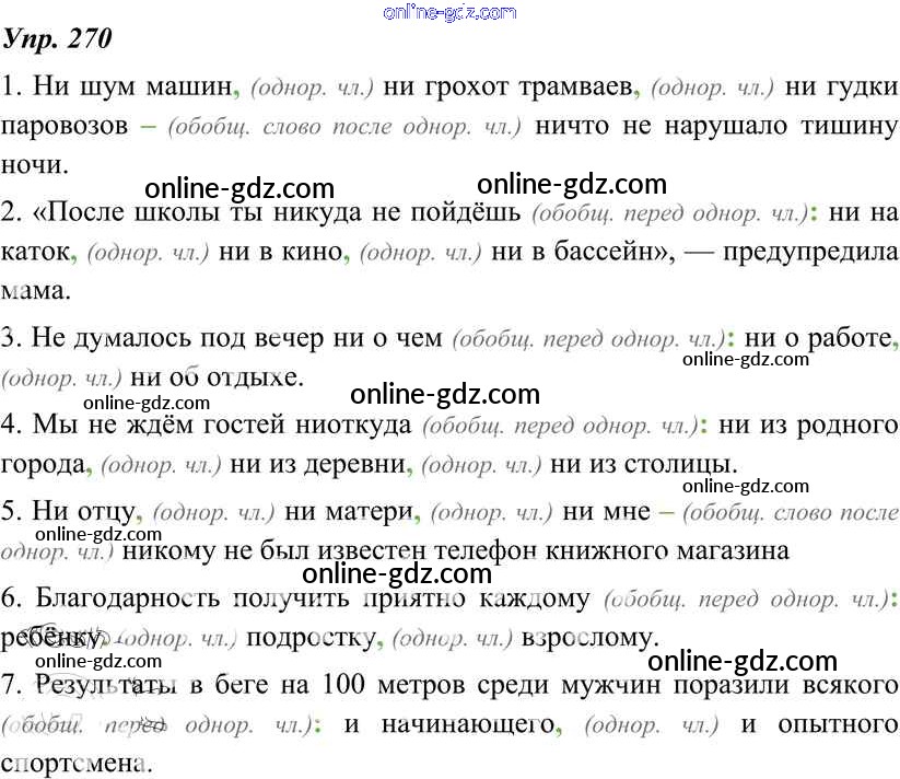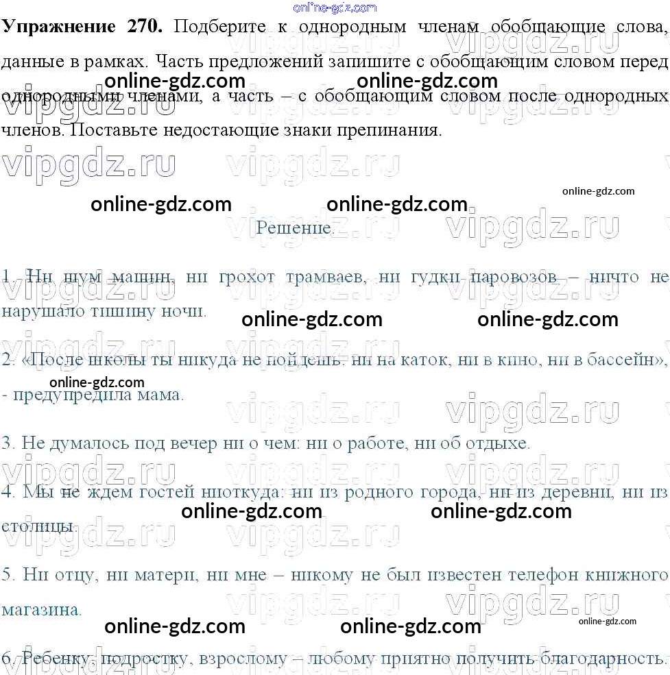 Готовые домашние задания по Русскому языку за 8 класс Учебник Тростенцова, Ладыженская 2014 - Упражнения 270
