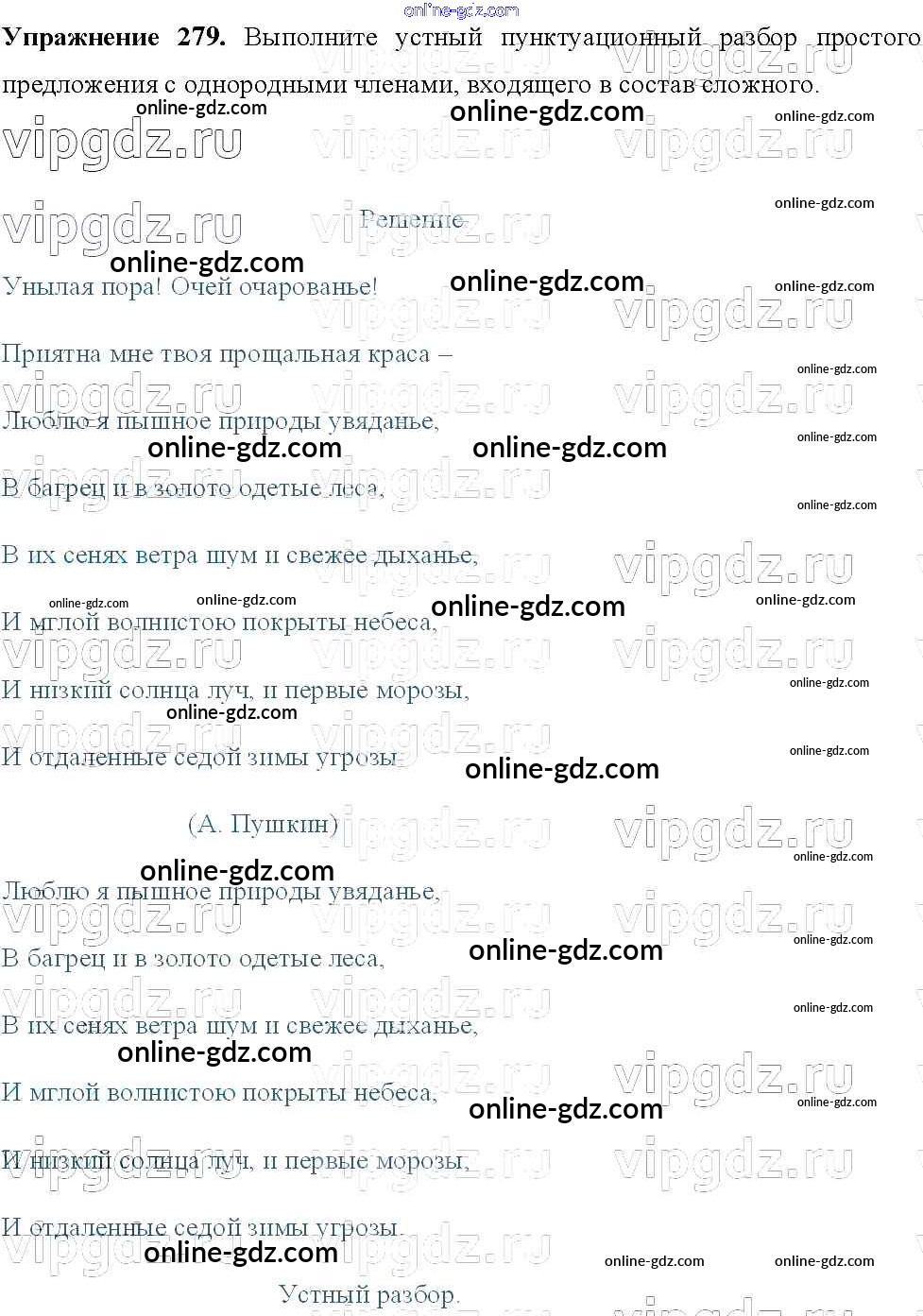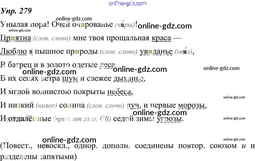 Готовые домашние задания по Русскому языку за 8 класс Учебник Тростенцова, Ладыженская 2014 - Упражнения 279