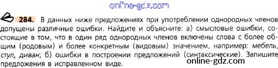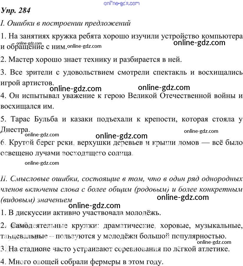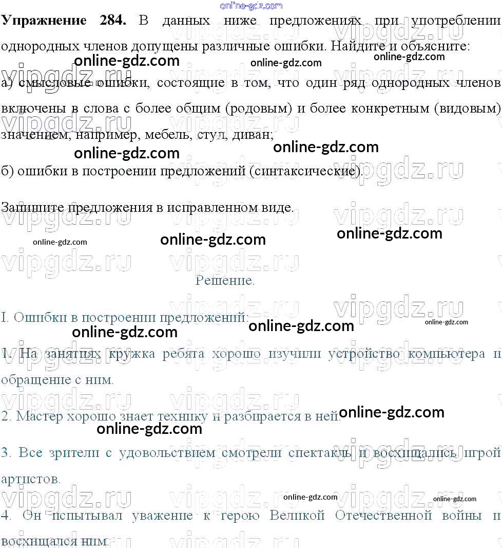 Готовые домашние задания по Русскому языку за 8 класс Учебник Тростенцова, Ладыженская 2014 - Упражнения 284