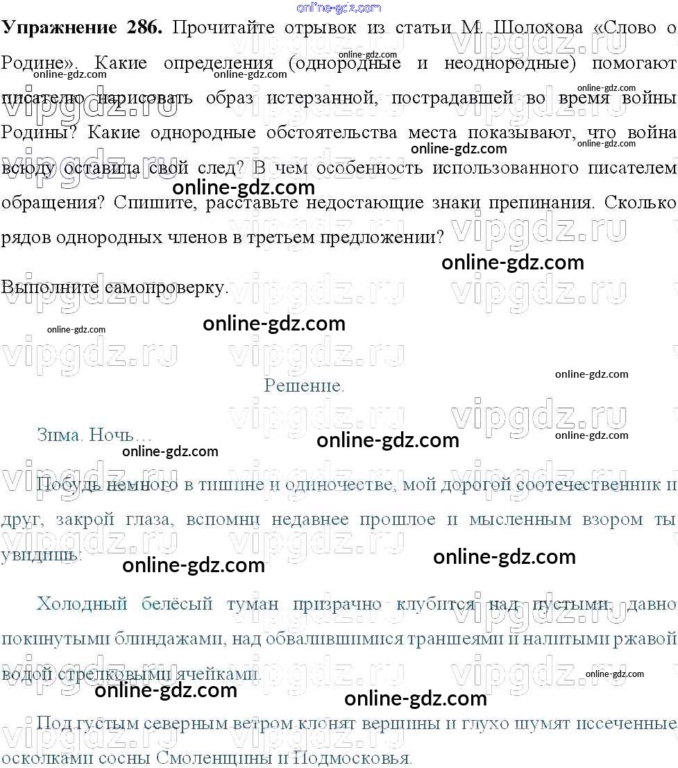 Готовые домашние задания по Русскому языку за 8 класс Учебник Тростенцова, Ладыженская 2014 - Упражнения 286
