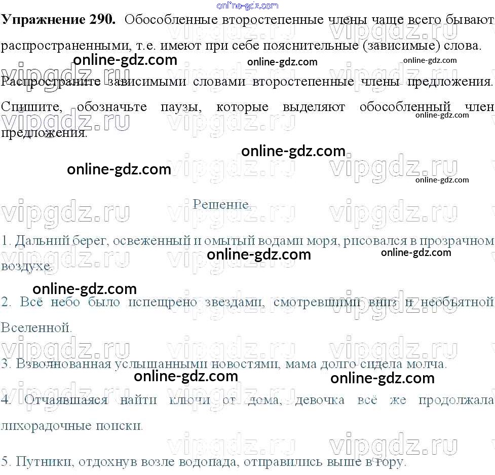 Готовые домашние задания по Русскому языку за 8 класс Учебник Тростенцова, Ладыженская 2014 - Упражнения 290