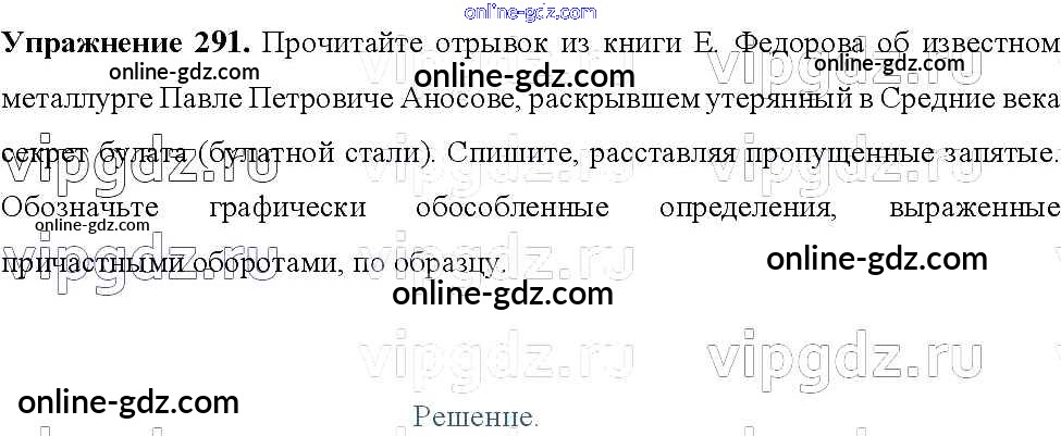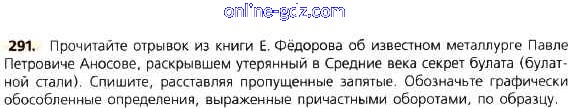 Готовые домашние задания по Русскому языку за 8 класс Учебник Тростенцова, Ладыженская 2014 - Упражнения 291