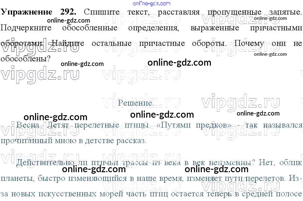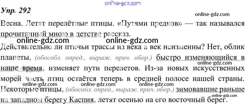 Готовые домашние задания по Русскому языку за 8 класс Учебник Тростенцова, Ладыженская 2014 - Упражнения 292