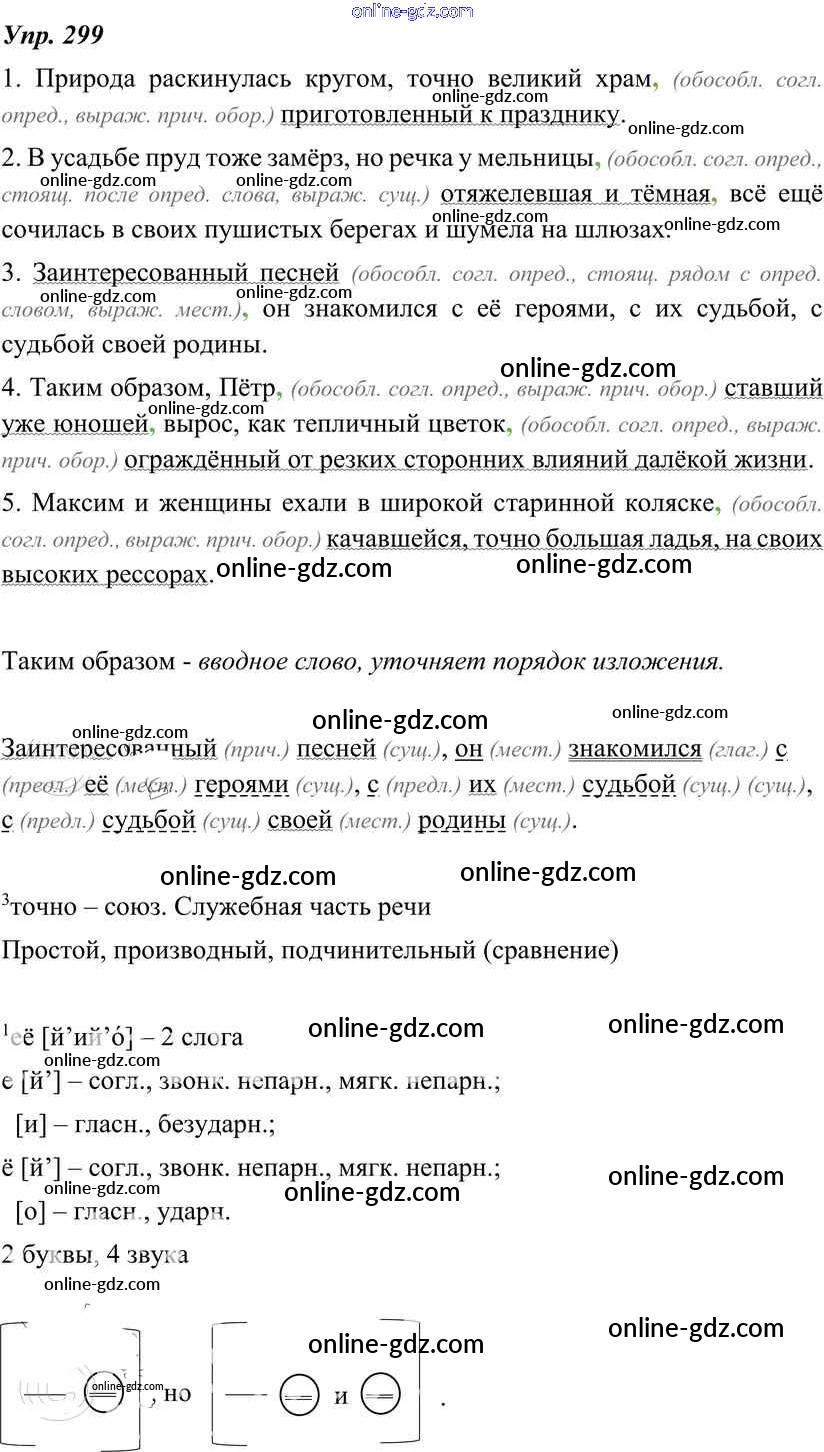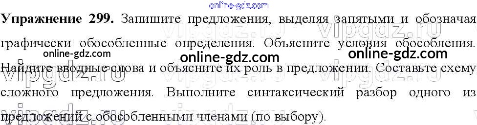 Готовые домашние задания по Русскому языку за 8 класс Учебник Тростенцова, Ладыженская 2014 - Упражнения 299