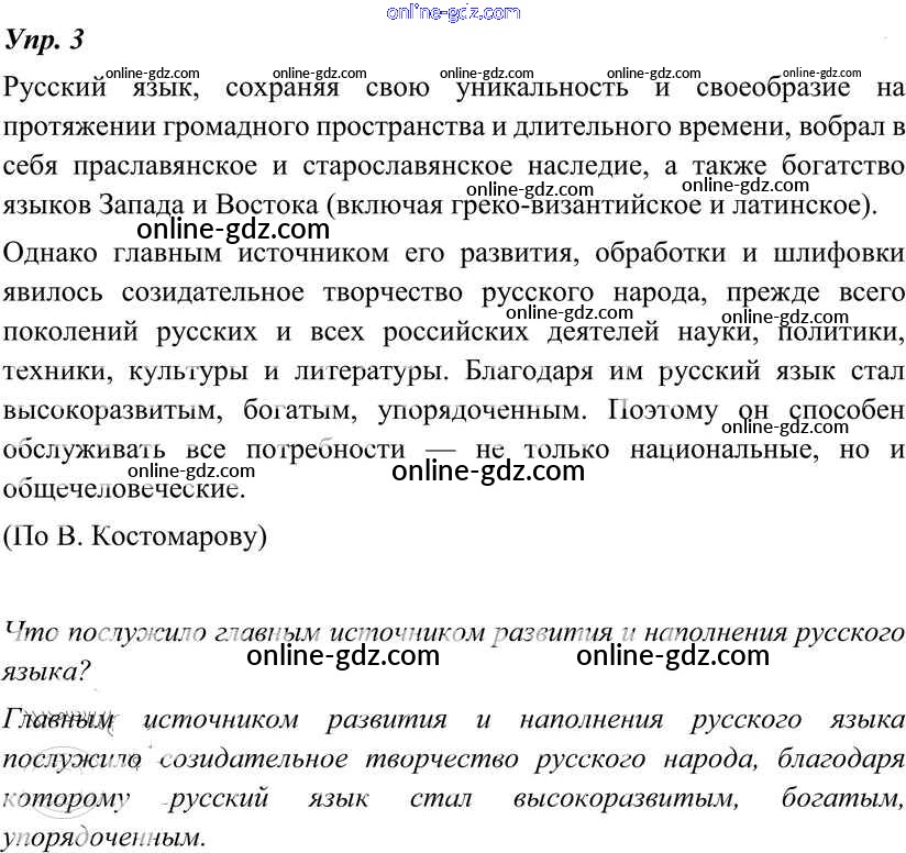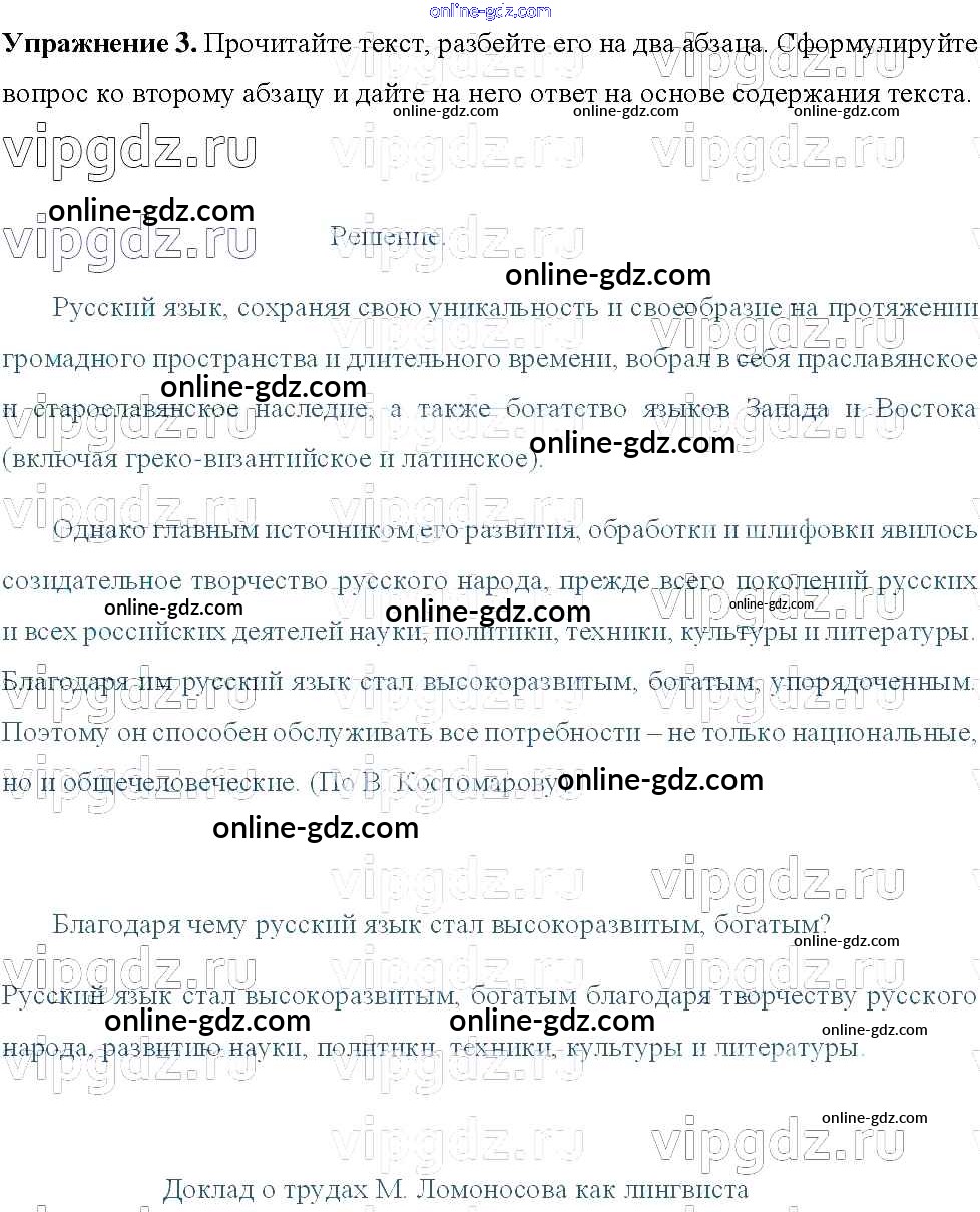 Готовые домашние задания по Русскому языку за 8 класс Учебник Тростенцова, Ладыженская 2014 - Упражнения 3