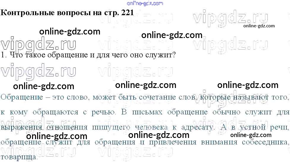 Готовые домашние задания по Русскому языку за 8 класс Учебник Тростенцова, Ладыженская 2014 - Задания стр.221