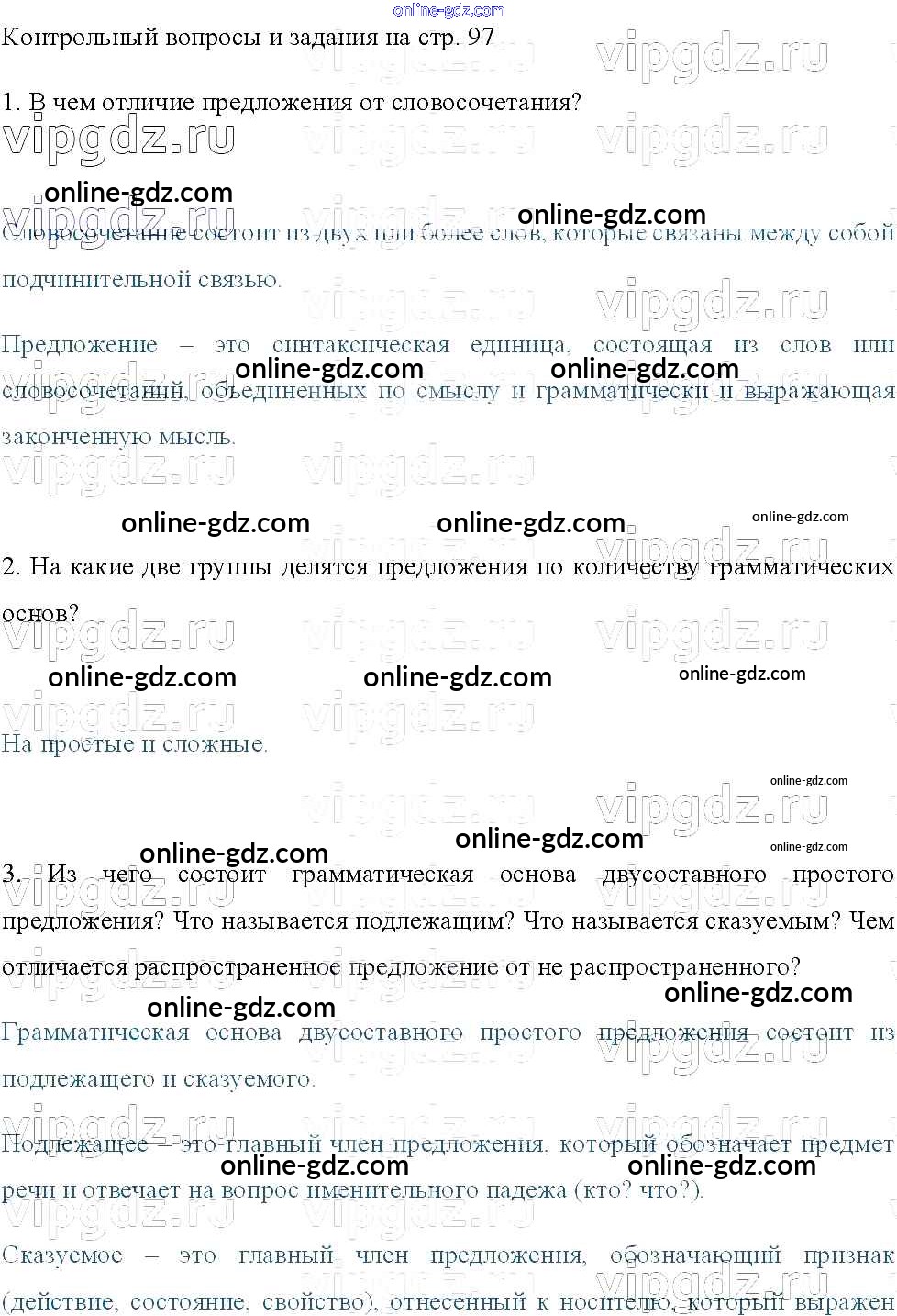Готовые домашние задания по Русскому языку за 8 класс Учебник Тростенцова, Ладыженская 2014 - Задания стр.97