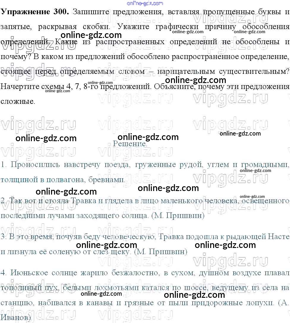 Готовые домашние задания по Русскому языку за 8 класс Учебник Тростенцова, Ладыженская 2014 - Упражнения 300