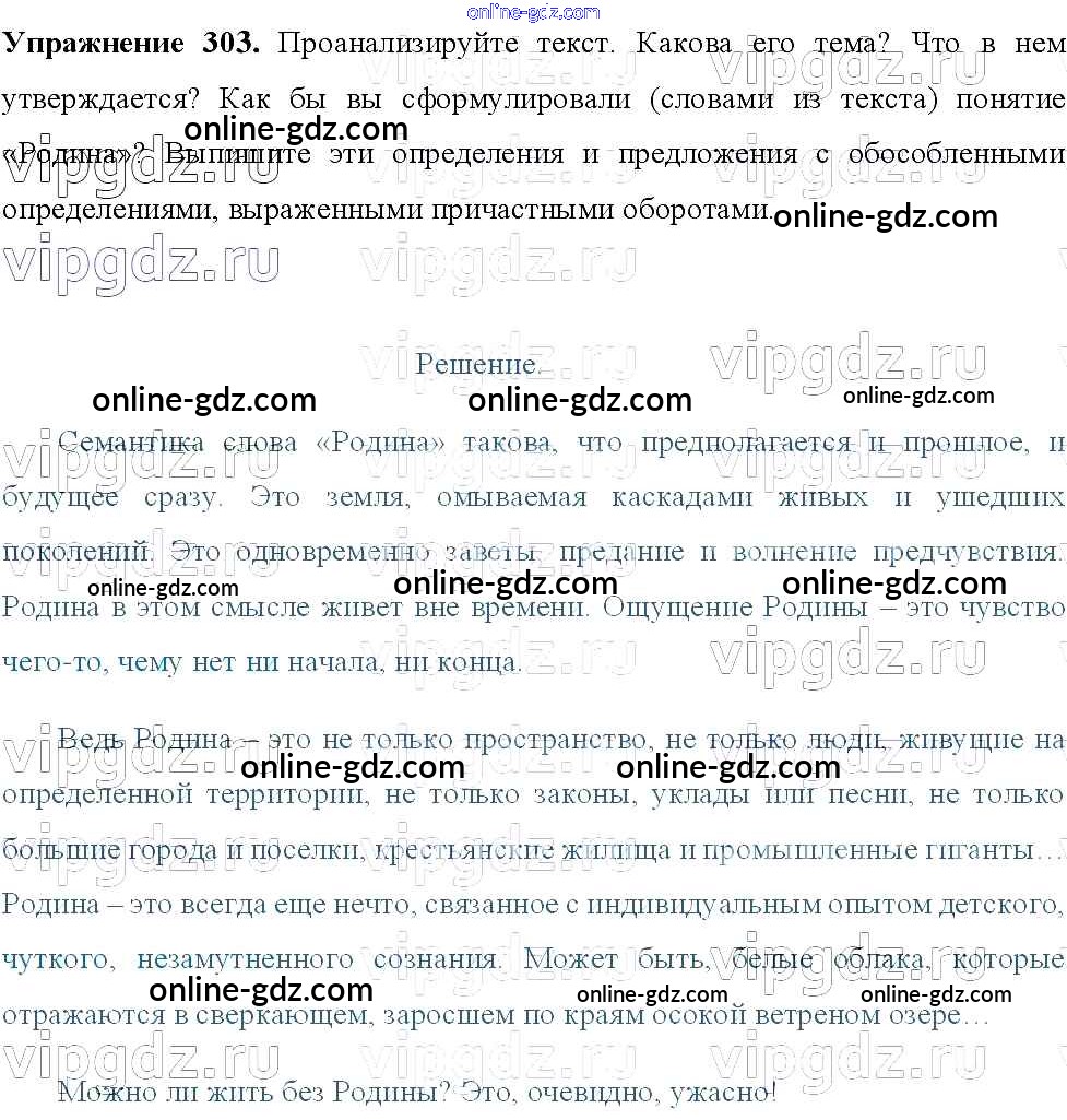 Готовые домашние задания по Русскому языку за 8 класс Учебник Тростенцова, Ладыженская 2014 - Упражнения 303