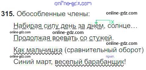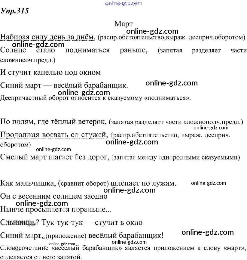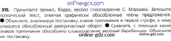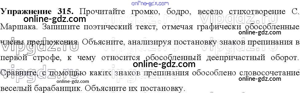 Готовые домашние задания по Русскому языку за 8 класс Учебник Тростенцова, Ладыженская 2014 - Упражнения 315