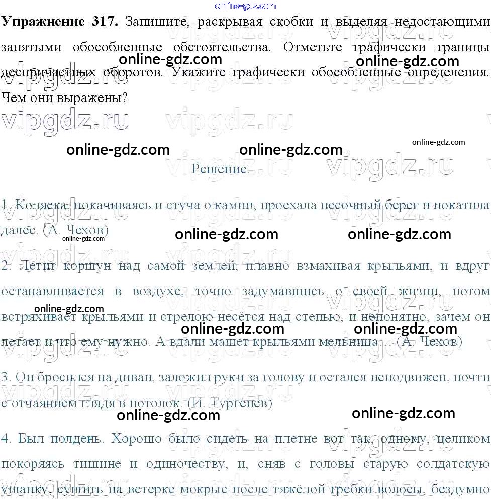 Готовые домашние задания по Русскому языку за 8 класс Учебник Тростенцова, Ладыженская 2014 - Упражнения 317