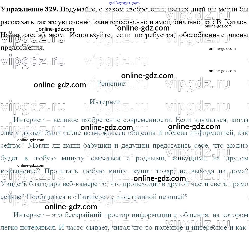 Готовые домашние задания по Русскому языку за 8 класс Учебник Тростенцова, Ладыженская 2014 - Упражнения 329