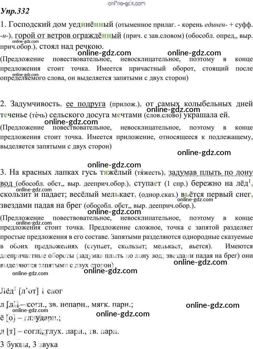 Готовые домашние задания по Русскому языку за 8 класс Учебник Тростенцова, Ладыженская 2014 - Упражнения 332