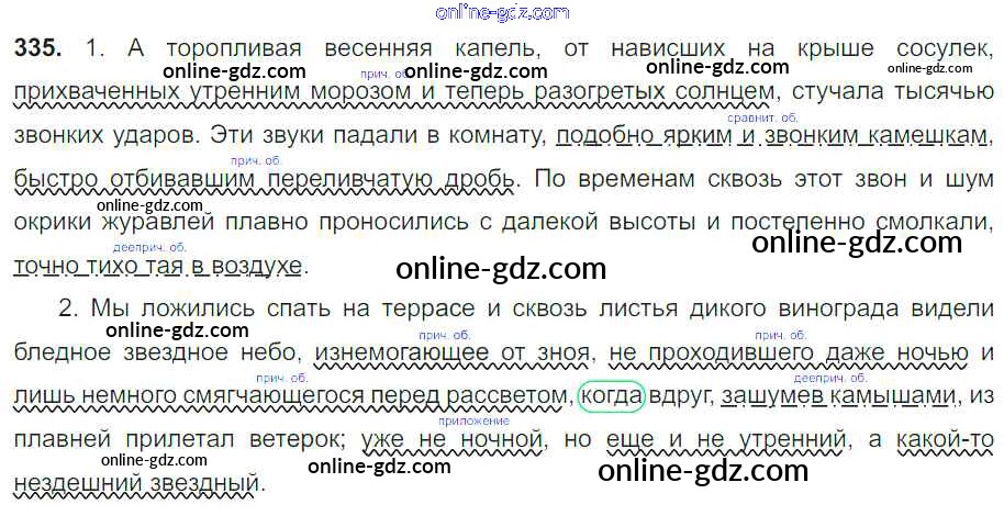Готовые домашние задания по Русскому языку за 8 класс Учебник Тростенцова, Ладыженская 2014 - Упражнения 335