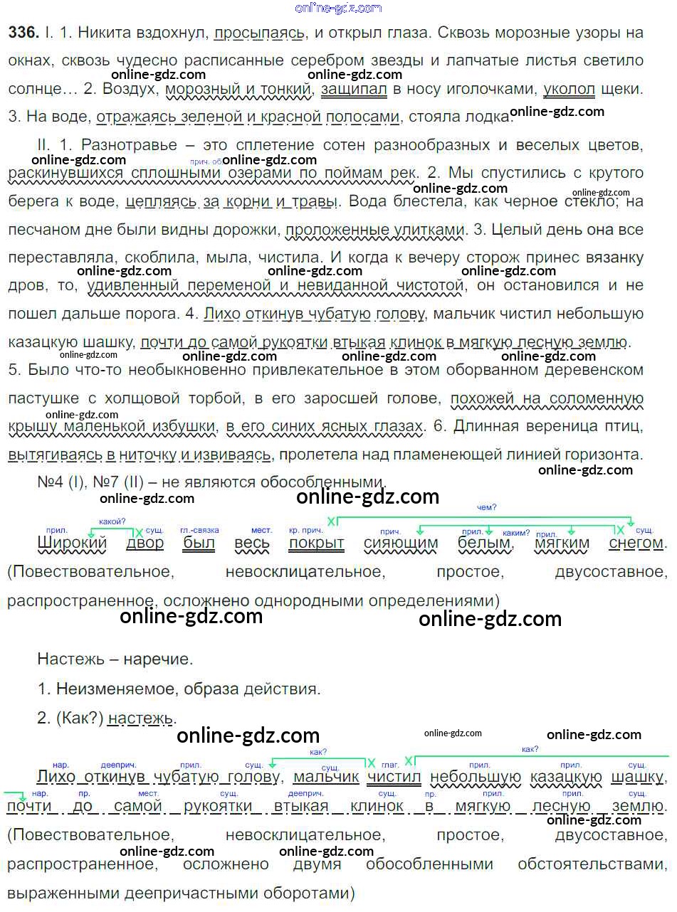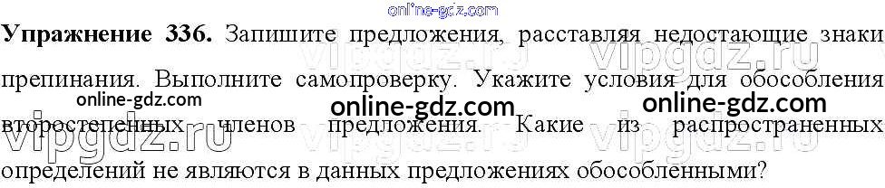 Готовые домашние задания по Русскому языку за 8 класс Учебник Тростенцова, Ладыженская 2014 - Упражнения 336