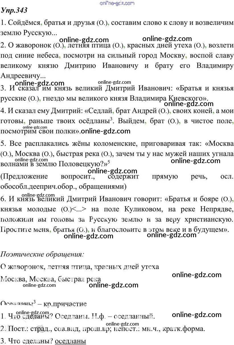 Готовые домашние задания по Русскому языку за 8 класс Учебник Тростенцова, Ладыженская 2014 - Упражнения 343
