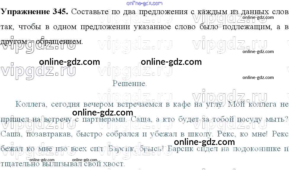 Готовые домашние задания по Русскому языку за 8 класс Учебник Тростенцова, Ладыженская 2014 - Упражнения 345