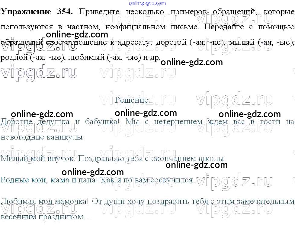 Готовые домашние задания по Русскому языку за 8 класс Учебник Тростенцова, Ладыженская 2014 - Упражнения 354