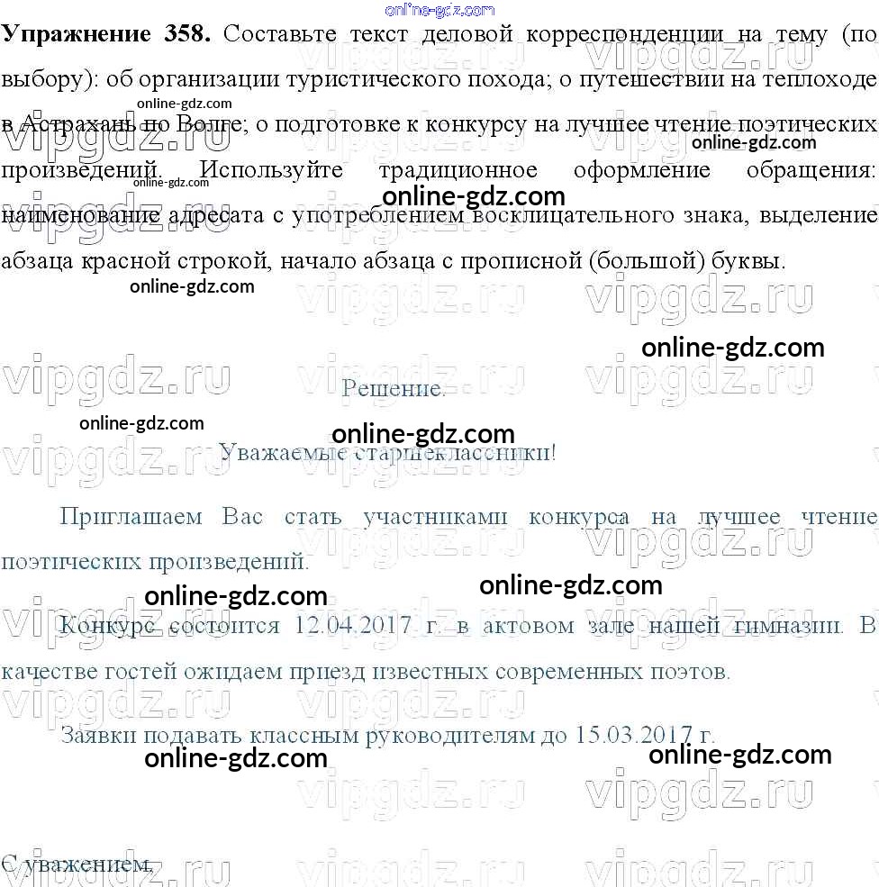 Готовые домашние задания по Русскому языку за 8 класс Учебник Тростенцова, Ладыженская 2014 - Упражнения 358