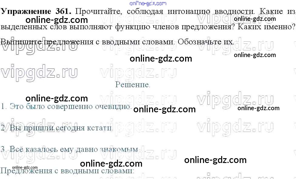 Готовые домашние задания по Русскому языку за 8 класс Учебник Тростенцова, Ладыженская 2014 - Упражнения 361