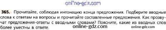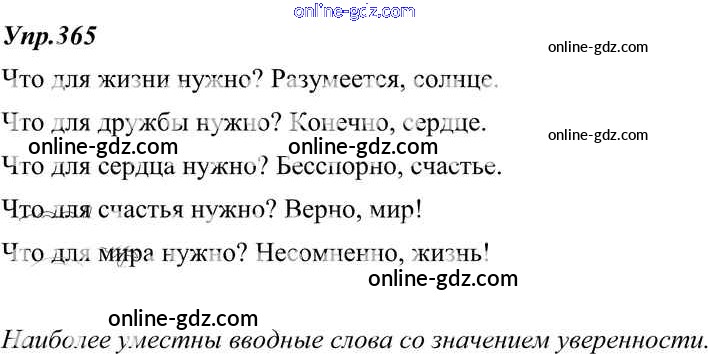 Готовые домашние задания по Русскому языку за 8 класс Учебник Тростенцова, Ладыженская 2014 - Упражнения 365