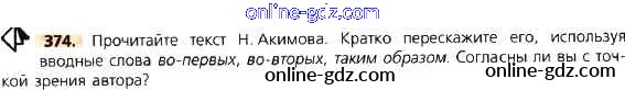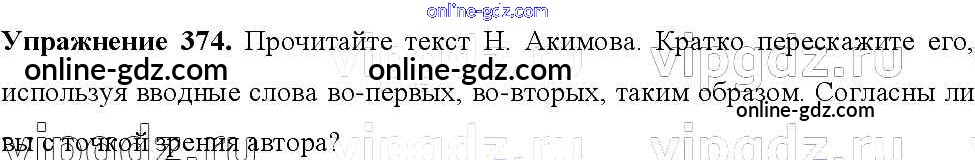 Готовые домашние задания по Русскому языку за 8 класс Учебник Тростенцова, Ладыженская 2014 - Упражнения 374