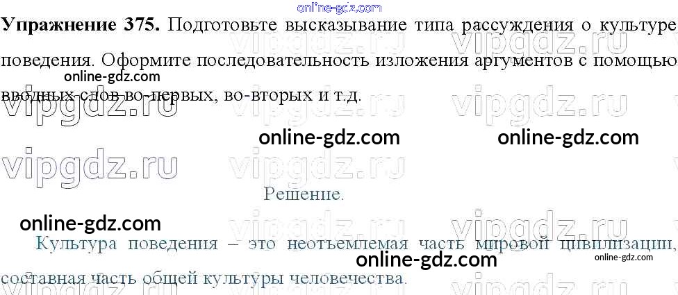 Готовые домашние задания по Русскому языку за 8 класс Учебник Тростенцова, Ладыженская 2014 - Упражнения 375