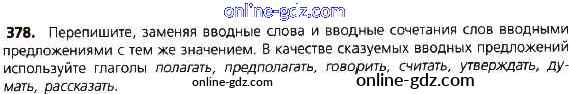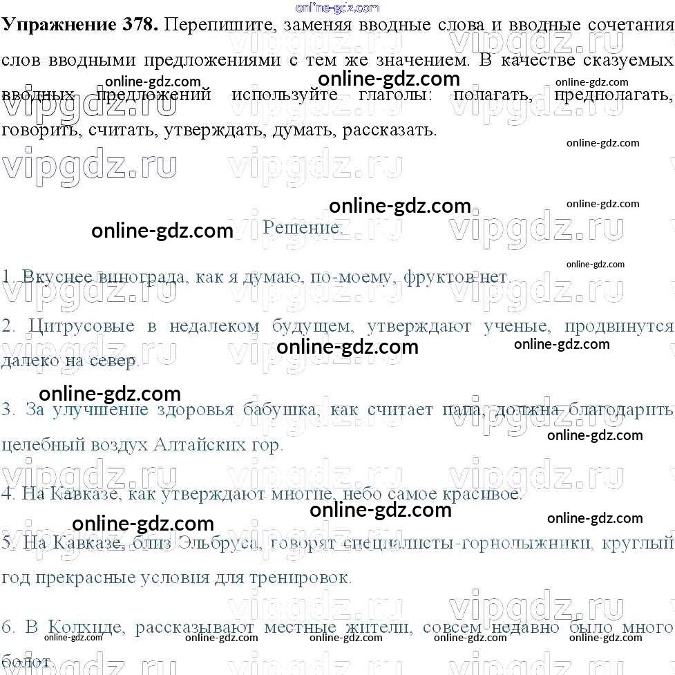 Готовые домашние задания по Русскому языку за 8 класс Учебник Тростенцова, Ладыженская 2014 - Упражнения 378