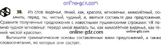 Готовые домашние задания по Русскому языку за 8 класс Учебник Тростенцова, Ладыженская 2014 - Упражнения 38