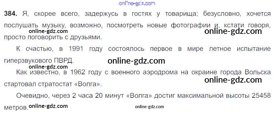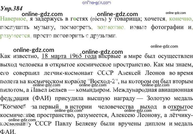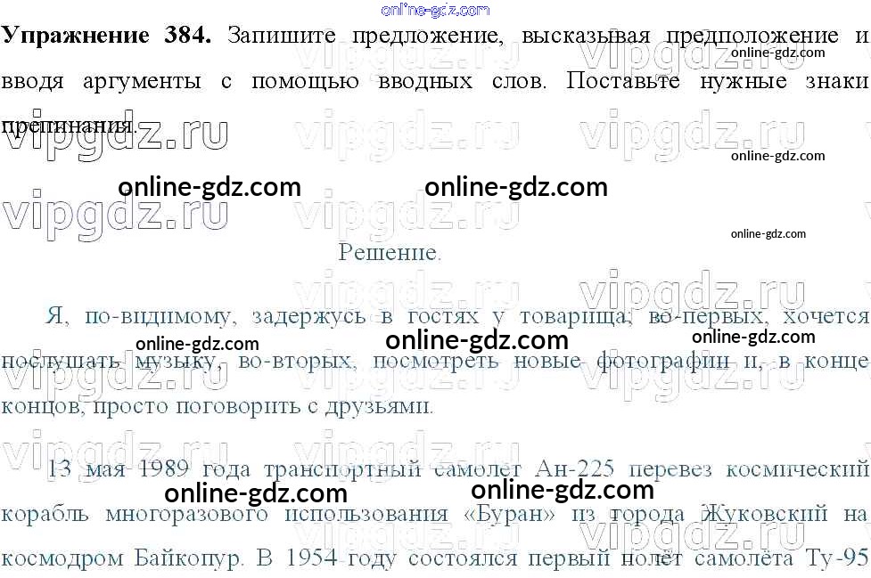 Готовые домашние задания по Русскому языку за 8 класс Учебник Тростенцова, Ладыженская 2014 - Упражнения 384