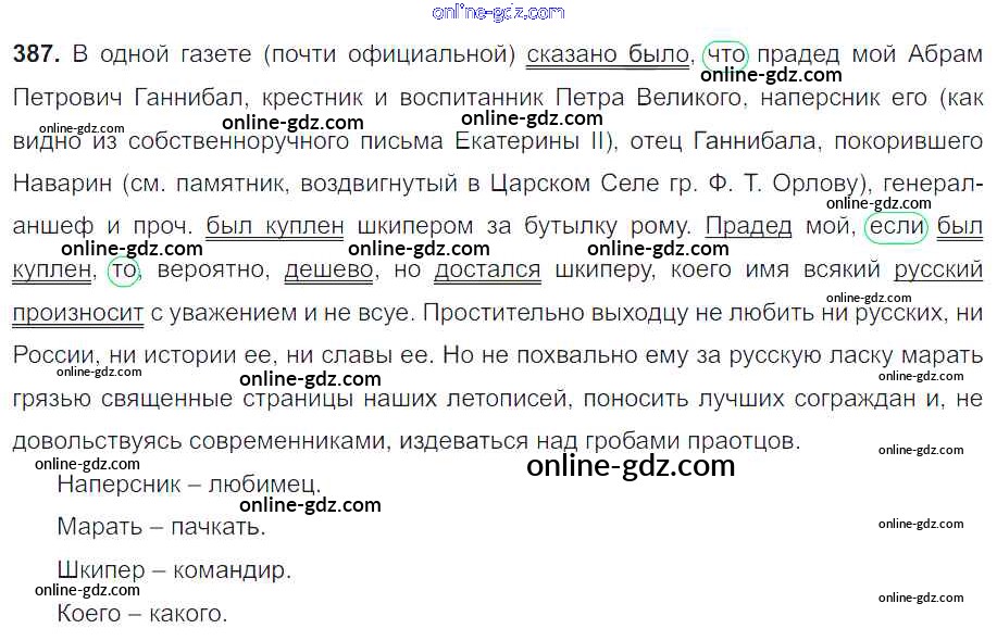 Готовые домашние задания по Русскому языку за 8 класс Учебник Тростенцова, Ладыженская 2014 - Упражнения 387