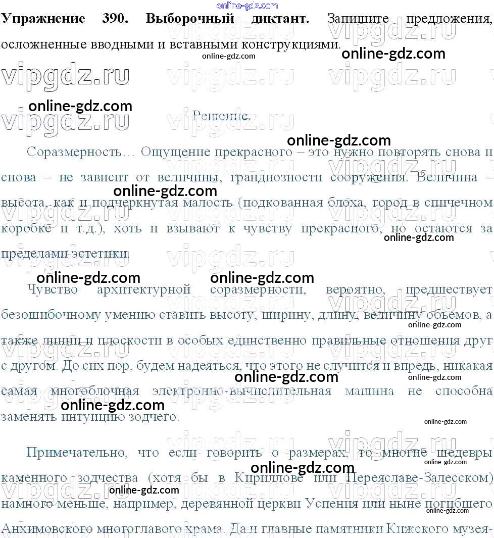 Готовые домашние задания по Русскому языку за 8 класс Учебник Тростенцова, Ладыженская 2014 - Упражнения 390